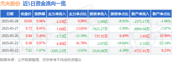 5月28日的资金流向数据方面,主力资金净流入2.23亿元,占总成交额9.98%,游资资金净流出1.99亿元,占总成交额8.92%,散户资金净流出2375.17万元,占总成交额1.06%。