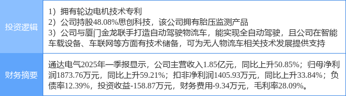 该股为无人物流车,胎压监测,轮边电机概念热股,当日无人物流车概念上涨6.5%,胎压监测概念上涨4.08%,轮边电机概念上涨3.85%。