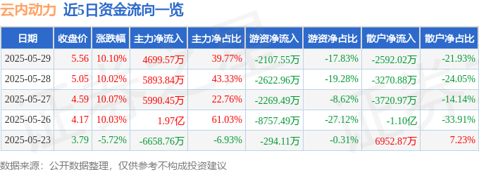 5月29日的资金流向数据方面,主力资金净流入4699.57万元,占总成交额39.77%,游资资金净流出2107.55万元,占总成交额17.83%,散户资金净流出2592.02万元,占总成交额21.93%。
