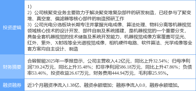 该股为核聚变,机器视觉,智能制造概念热股,当日核聚变概念上涨2.48%,机器视觉概念上涨2.34%,智能制造概念上涨2.09%。