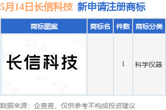 今年以来芜湖长信科技股份有限公司新申请注册商标1件,截止目前公司共持有注册商标10件,另有3件商标尚在注册申请中。