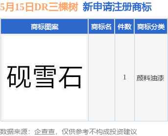 今年以来三棵树涂料股份有限公司新申请注册商标80件,截止目前公司共持有注册商标1980件,另有448件商标尚在注册申请中。