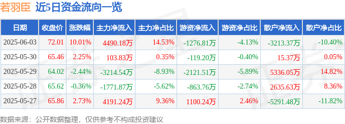 6月3日的资金流向数据方面,主力资金净流入4490.18万元,占总成交额14.53%,游资资金净流出1276.81万元,占总成交额4.13%,散户资金净流出3213.37万元,占总成交额10.4%。
