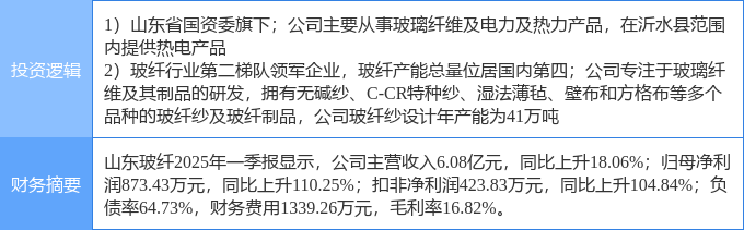该股为玻纤,山东国企改革,国企改革概念热股,当日玻纤概念上涨3.4%,山东国企改革概念上涨1.03%,国企改革概念上涨0.66%。