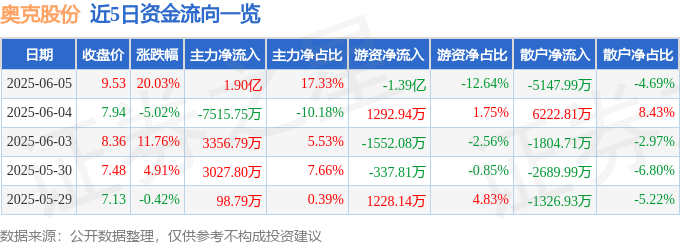 6月5日的资金流向数据方面,主力资金净流入1.9亿元,占总成交额17.33%,游资资金净流出1.39亿元,占总成交额12.64%,散户资金净流出5147.99万元,占总成交额4.69%。