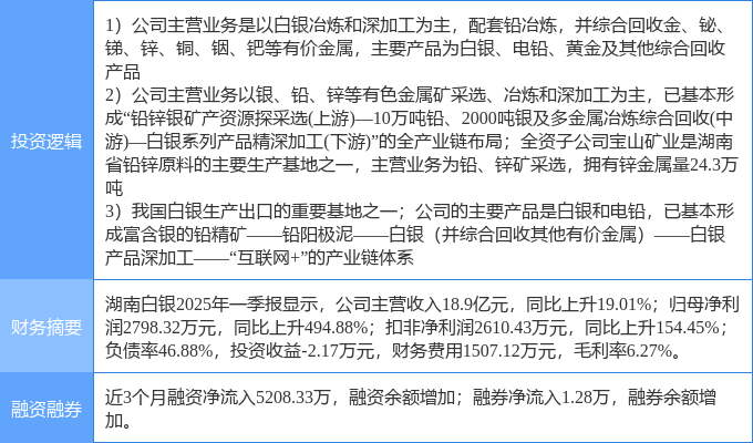 该股为白银,有色 · 锌,黄金概念热股,当日白银概念上涨4.03%,有色 · 锌概念上涨2.79%,黄金概念上涨2.39%。