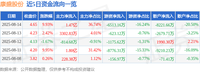 8月14日的资金流向数据方面,主力资金净流入1.47亿元,占总成交额36.74%,游资资金净流出6513.16万元,占总成交额16.24%,散户资金净流出8221.66万元,占总成交额20.5%。