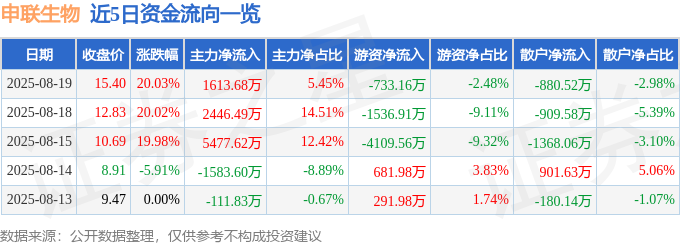 8月19日的资金流向数据方面,主力资金净流入1613.68万元,占总成交额5.45%,游资资金净流出733.16万元,占总成交额2.48%,散户资金净流出880.52万元,占总成交额2.98%。