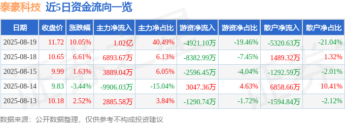 8月19日的资金流向数据方面,主力资金净流入1.02亿元,占总成交额40.49%,游资资金净流出4921.1万元,占总成交额19.46%,散户资金净流出5320.63万元,占总成交额21.04%。