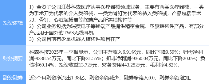 该股为骨科材料,机器人,无线耳机概念热股,当日骨科材料概念上涨2.5%,机器人概念上涨1.28%,无线耳机概念上涨0.99%。