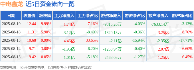 8月19日的资金流向数据方面,主力资金净流入1.74亿元,占总成交额7.16%,游资资金净流出9815.26万元,占总成交额4.03%,散户资金净流出7633.14万元,占总成交额3.13%。