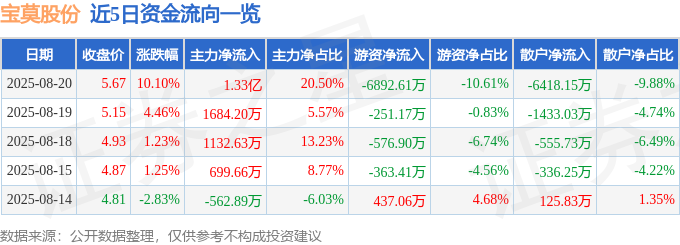 8月20日的资金流向数据方面,主力资金净流入1.33亿元,占总成交额20.5%,游资资金净流出6892.61万元,占总成交额10.61%,散户资金净流出6418.15万元,占总成交额9.88%。