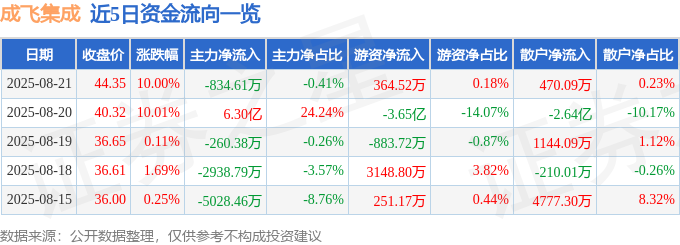 8月21日的资金流向数据方面,主力资金净流出834.61万元,占总成交额0.41%,游资资金净流入364.52万元,占总成交额0.18%,散户资金净流入470.09万元,占总成交额0.23%。