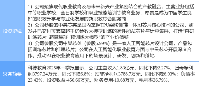 该股为AI算力芯片,人工智能,职业教育概念热股,当日AI算力芯片概念上涨3.03%,人工智能概念上涨1.26%,职业教育概念上涨1.24%。