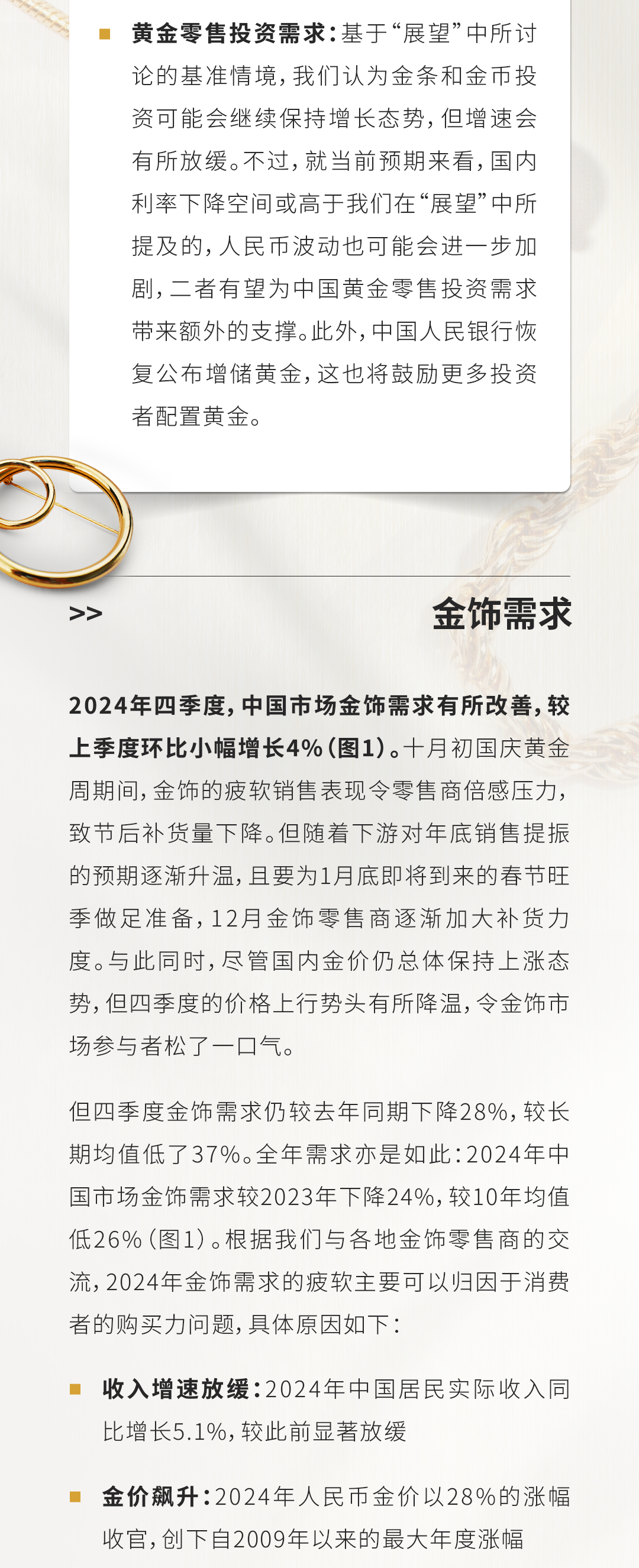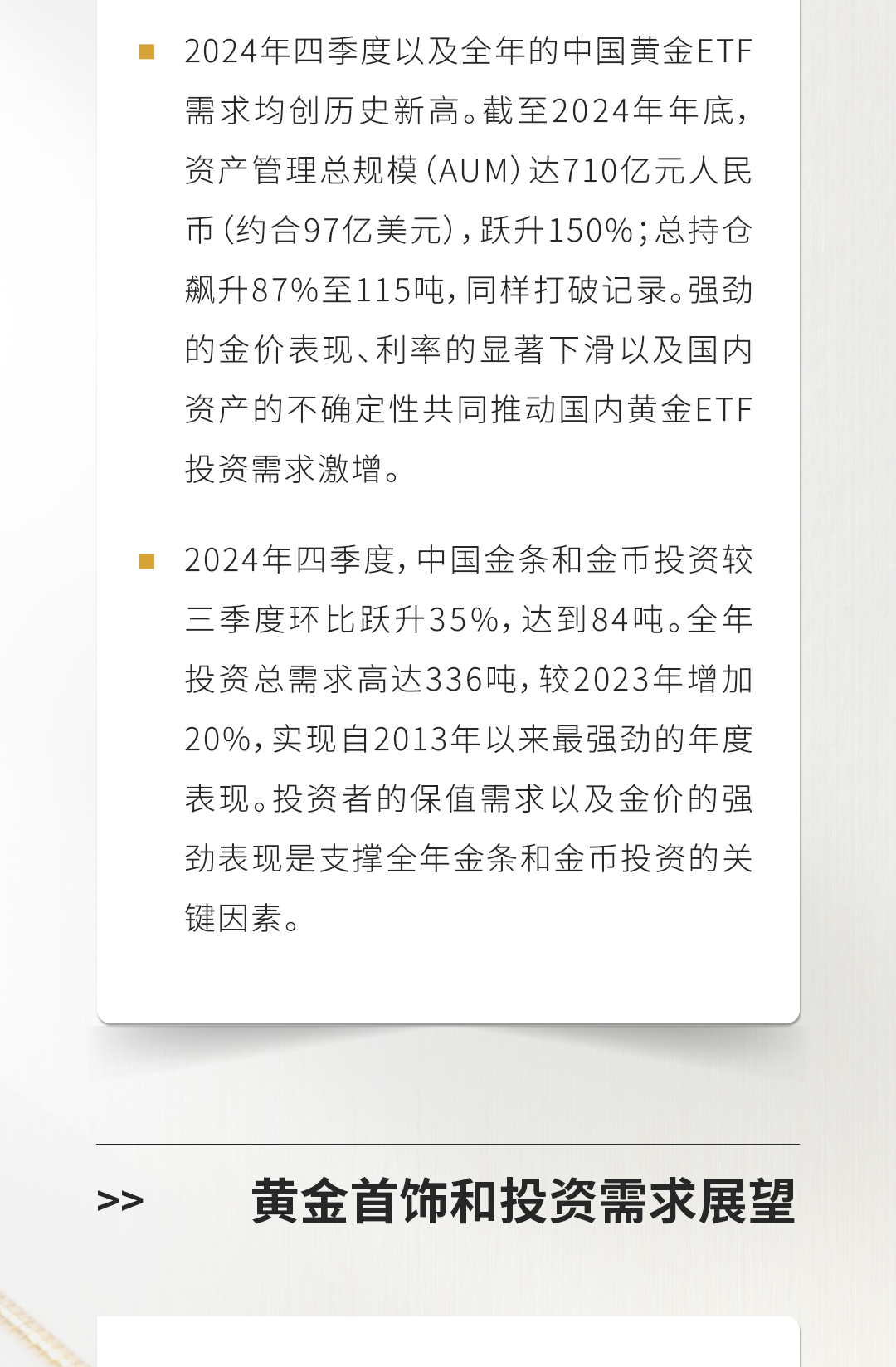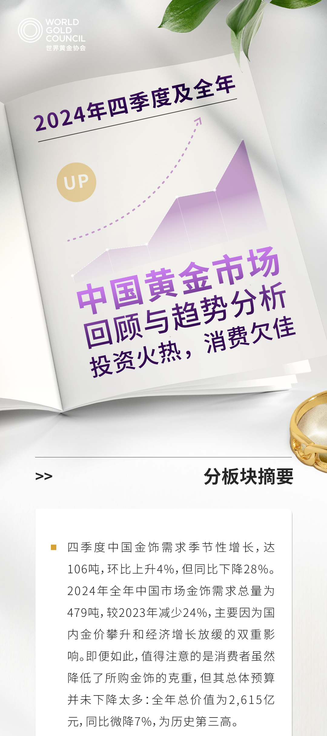 中国黄金需求趋势报告 | 2024年四季度及全年中国黄金市场:投资火热,消费欠佳