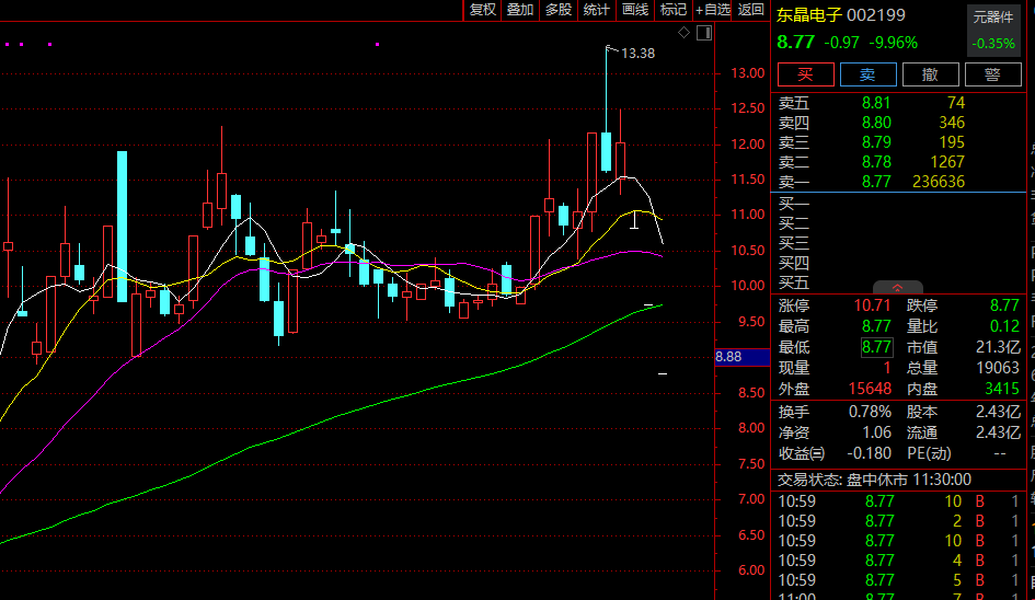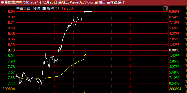 高位人气股中百集团早间低开低走,盘中一度触及跌停,随后又快速拉升,截至午间收盘,以涨停报收,走出“地天板”行情。此前,12月18日中百集团也出现过“地天板”走势,曾14个交易日9涨停。