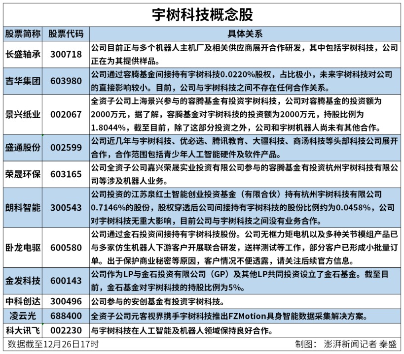 此前,朗科智能(300543)等提示与宇树科技没有业务合作,警示风险,实益达(002137)、大众公用(600635)等数家上市公司间接持股但尚未提及持股宇树科技。
