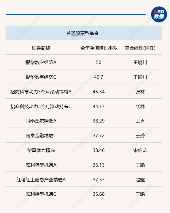 普通股票型:最高收益率50%,银华数字经济A夺魁