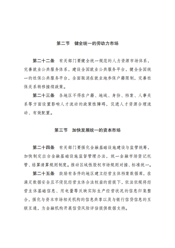 国家发改委印发《全国统一大市场建设指引(试行)》。其中提到,有关部门要健全统一规范的人力资源市场体系,完善就业公共服务体系,建设全国就业公共服务平台,健全全国统一的社保公共服务平台,全面取消在就业地参保户籍限制,完善社保关系转移接续政策。