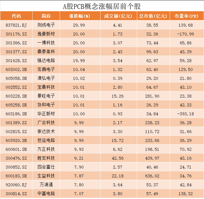 9日,PCB概念大面积爆发,板块指数涨逾3.93%,板块内十余股涨停,一图速览↓↓↓