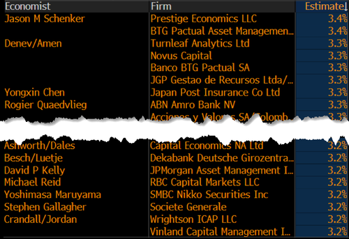 目前唯一可以稍有慰藉的是,预估CPI同比涨幅将达到3%的投行还不算多……