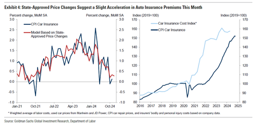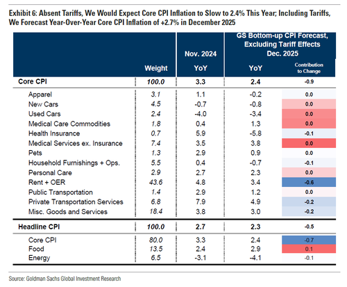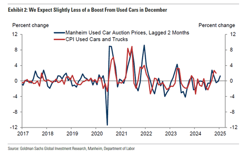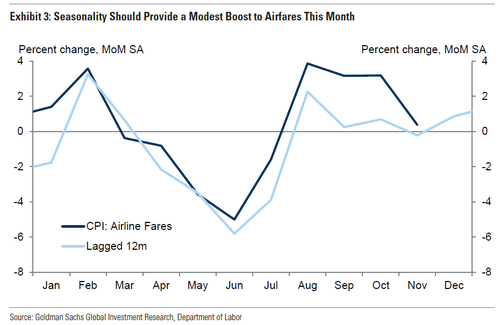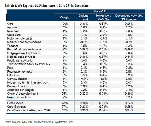 在CPI报告的其他部分,高盛预计住房类别的价格将略有反弹,反映出业主等价租金上涨0.30%(11月为+0.23%)和租金上涨0.25%(11月为+0.21%)。