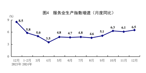 全年服务业增加值比上年增长5.0%。其中,信息传输、软件和信息技术服务业,租赁和商务服务业,交通运输、仓储和邮政业,住宿和餐饮业,金融业,批发和零售业增加值分别增长10.9%、10.4%、7.0%、6.4%、5.6%、5.5%。四季度,服务业增加值同比增长5.8%。12月份,服务业生产指数同比增长6.5%;其中,租赁和商务服务业,金融业,信息传输、软件和信息技术服务业,交通运输、仓储和邮政业生产指数分别增长9.5%、9.3%、8.8%、8.3%。1—11月份,规模以上服务业企业营业收入同比增长8.2%。其中,租赁和商务服务业,信息传输、软件和信息技术服务业,交通运输、仓储和邮政业企业营业收入分别增长11.5%、9.5%、8.3%。