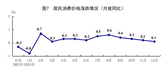 全年居民消费价格(CPI)比上年上涨0.2%。分类别看,食品烟酒价格下降0.1%,衣着价格上涨1.4%,居住价格上涨0.1%,生活用品及服务价格上涨0.5%,交通通信价格下降1.9%,教育文化娱乐价格上涨1.5%,医疗保健价格上涨1.3%,其他用品及服务价格上涨3.8%。在食品烟酒价格中,鲜果价格下降3.5%,粮食价格下降0.1%,鲜菜价格上涨5.0%,猪肉价格上涨7.7%。扣除食品和能源价格后的核心CPI上涨0.5%。12月份,居民消费价格同比上涨0.1%,环比持平。全年工业生产者出厂价格和购进价格比上年均下降2.2%;12月份,工业生产者出厂价格和购进价格同比均下降2.3%,环比均下降0.1%。