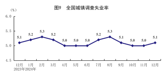 全年全国城镇调查失业率平均值为5.1%,比上年下降0.1个百分点。12月份,全国城镇调查失业率为5.1%。本地户籍劳动力调查失业率为5.3%;外来户籍劳动力调查失业率为4.6%,其中外来农业户籍劳动力调查失业率为4.5%。31个大城市城镇调查失业率为5.0%。全国企业就业人员周平均工作时间为49.0小时。全年农民工总量29973万人,比上年增加220万人,增长0.7%。其中,本地农民工12102万人,增长0.1%;外出农民工17871万人,增长1.2%。