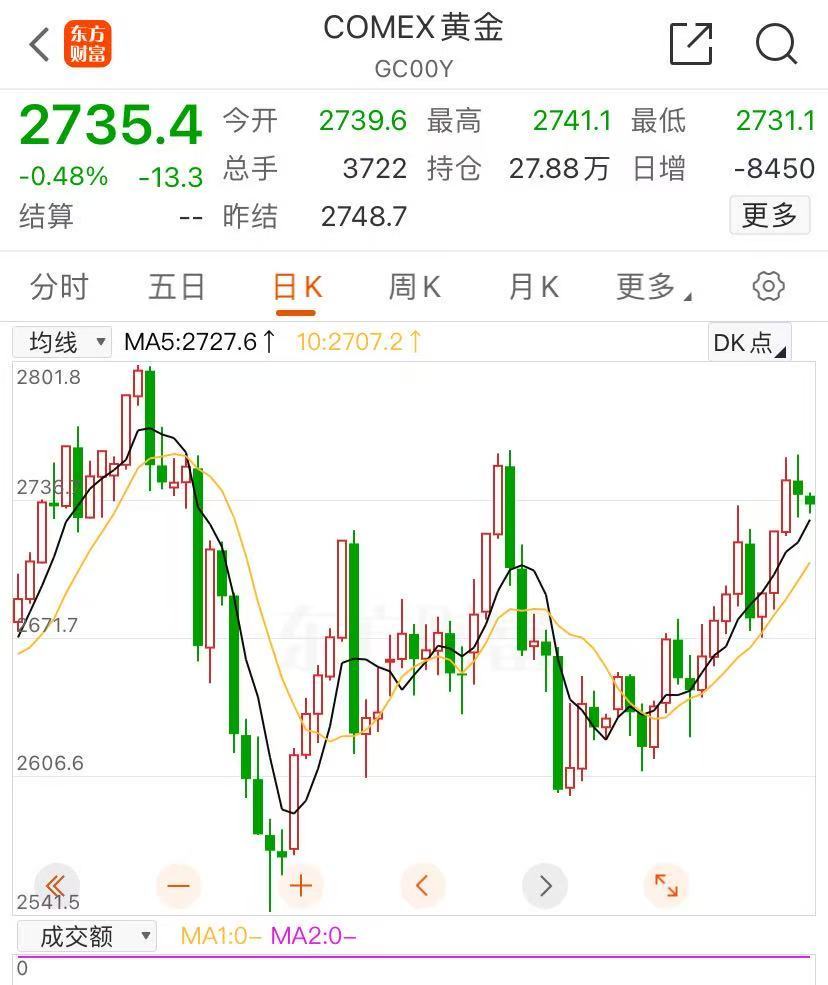 截至发稿,国际金价小幅下跌,暂报2735.4美元。