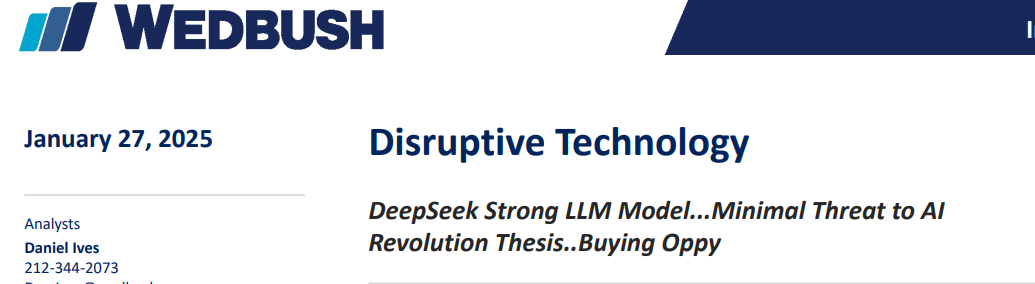 科技股“大多头”Wedbush:DeepSeek的威胁微乎其微,不要恐慌