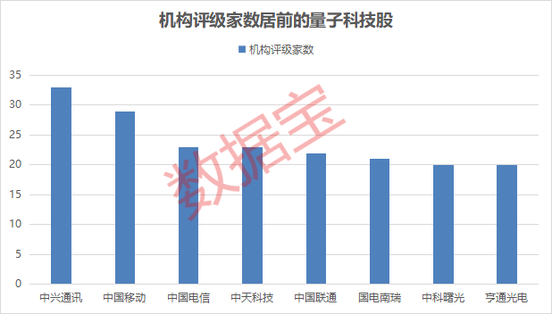 机构关注度来看,我国量子通信行业发展相对较好,通信行业的量子科技概念股最受机构关注,中兴通讯、中国移动、中国电信、中天科技、中国联通等评级家数超过20家。