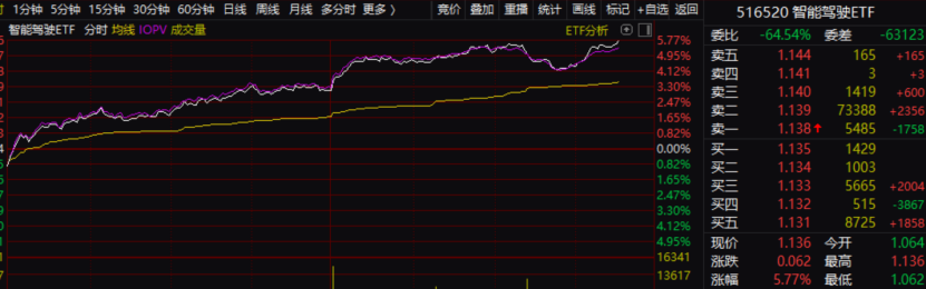 恒生科技指数涨幅扩大至2%,站稳5000点上方,创去年10月8日以来新高;比亚迪电子大涨17%,舜宇光学科技涨超10%。恒生指数涨1%,比亚迪股份涨超9%。智能驾驶概念大涨近6%。