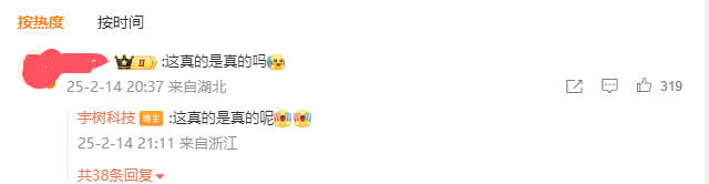 还有人留言道,“这真的是真的吗”。对此,宇树科技回应称:“这真的是真的呢”。