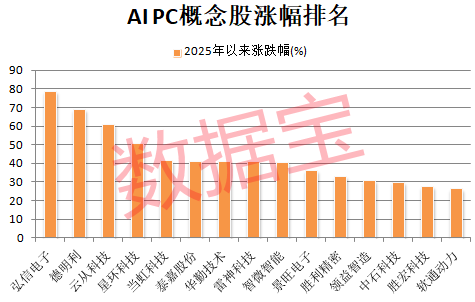 资金流向方面,数据宝统计,截至2月24日收盘,机构资金净买入超亿元的AI PC概念股有8只,包括胜宏科技、云从科技、胜利精密、江波龙、奥士康、智微智能、德明利、中国长城等。