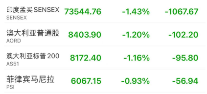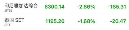 泰国基准股指一度下跌2.4%,自去年10月高点以来跌幅已超过20%。印尼股市也接近熊市区域。