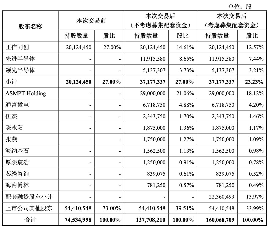 同时,ASMPT Holding将成为上市公司的重要股东,其母公司ASMPT系全球领先的半导体封装设备龙头企业,将在上市公司经营治理和战略决策等方面发挥重要作用,有利于上市公司业务转型升级和长远发展。