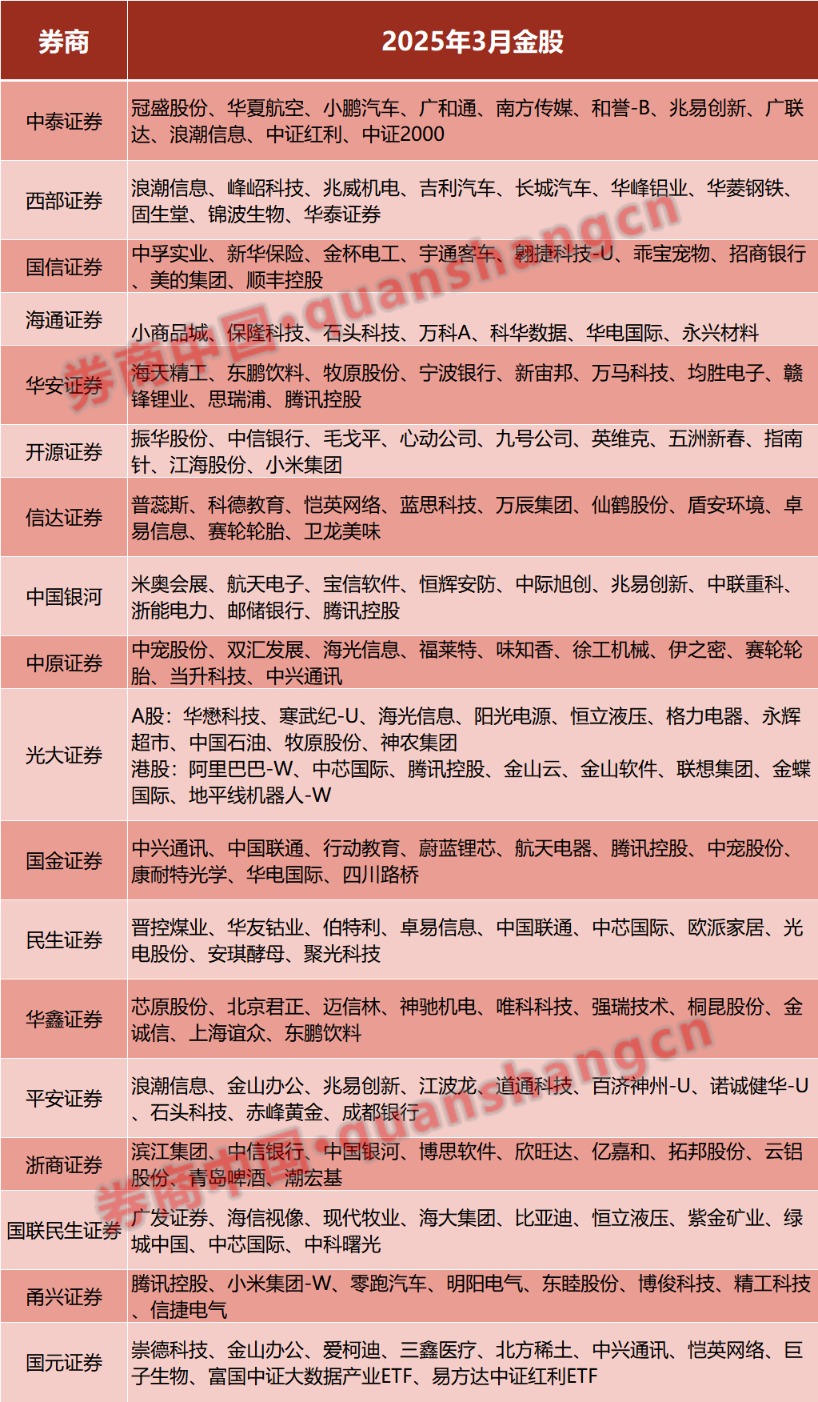 进入3月,券商3月金股名单也陆续出炉。