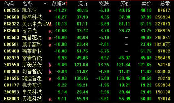 近期火爆的人形机器人概念大幅回调,截至收盘,凯尔达、隆盛科技、奥比中光、凌云光等跌超10%,捷昌驱动、威孚高科、福莱新材跌停,雷赛智能逼近跌停。