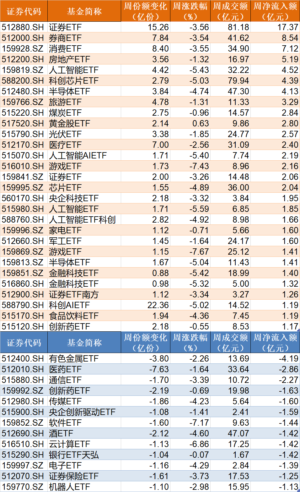 本周股指集体调整,沪深两市股票型ETF和跨境型ETF合计净流出约80亿元。