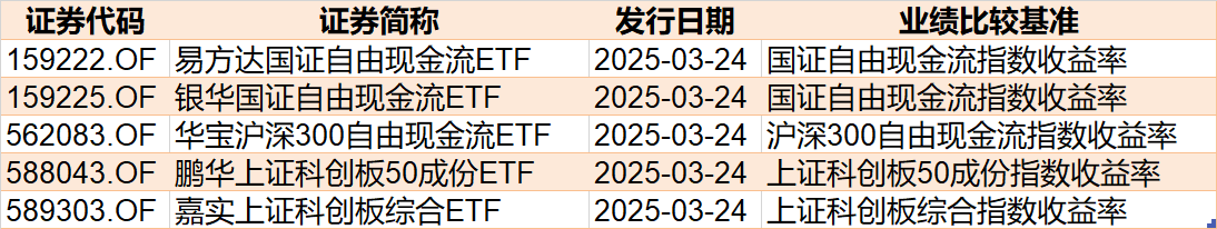 目前有5只ETF披露下周发行,跟踪标的有科创板综合、科创50、自由现金流等。