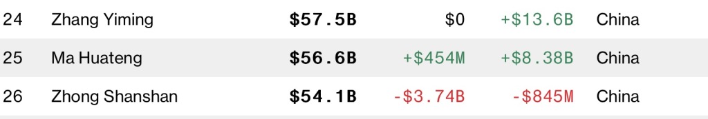 彭博亿万富豪榜,张一鸣位居第24位