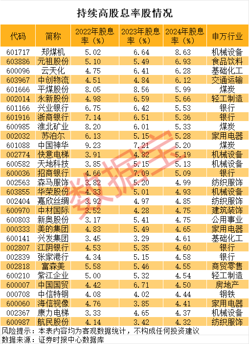 其中,郑煤机股息率最高,2024年度公司分配方案为10派11.2元(含税),股息率高达8.63%;业绩方面,公司2024年度实现净利润39.34亿元,同比增长20.16%。