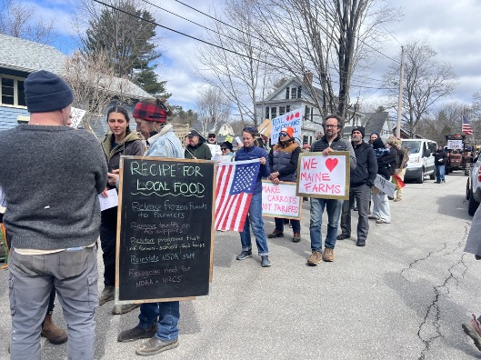 △当地时间4月16日,美国缅因州农民发起抗议游行,反对特朗普政府削减农业开支的政策。其中,有农民手持“撤销农产品关税”的相关标语。