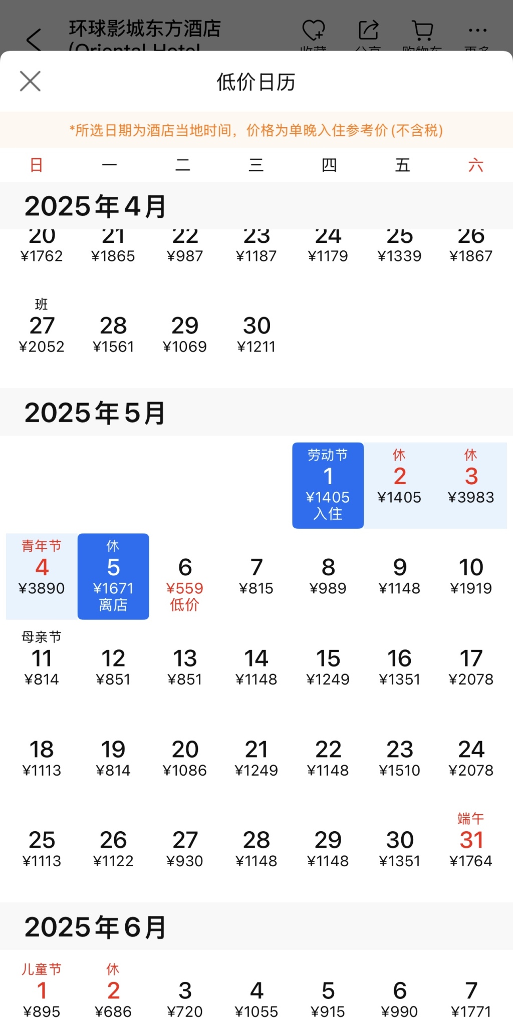 以大阪为例,大阪日本环球影城园前酒店5月3日的客房最低价格为3704元,与5月6日的960元相比,价格涨幅约286%;而大阪环球影城附近的环球影城东方酒店5月3日的客房最低价格为3983元,与5月6日的559元相比,价格涨幅高达613%。