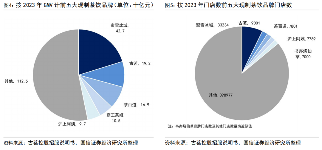 第四,蜜雪冰城品牌GMV大幅领先,但古茗控股单店日均GMV更高。按最新披露数据测算三家公司的总GMV规模与门店数量应呈现相同的排序。但从单店日均GMV角度看,古茗控股为6500元、蜜雪冰城为4184元、沪上阿姨为3764元(古茗控股、蜜雪冰城为2024年前三季度数据,沪上阿姨为2024上半年度数据)。