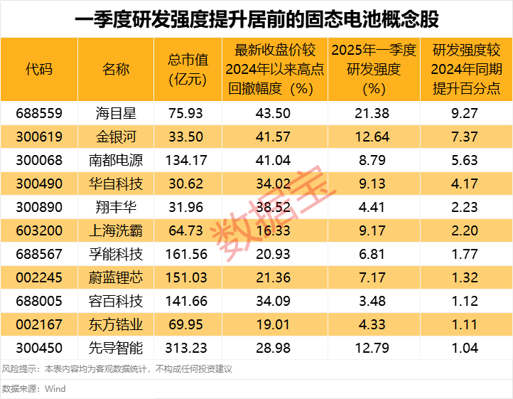 不少概念股今年一季度研发强度(研发费用占营收比例)呈现显著提升,海目星、金银河、南都电源、华自科技的研发强度较2024年同期均提升超4个百分点。