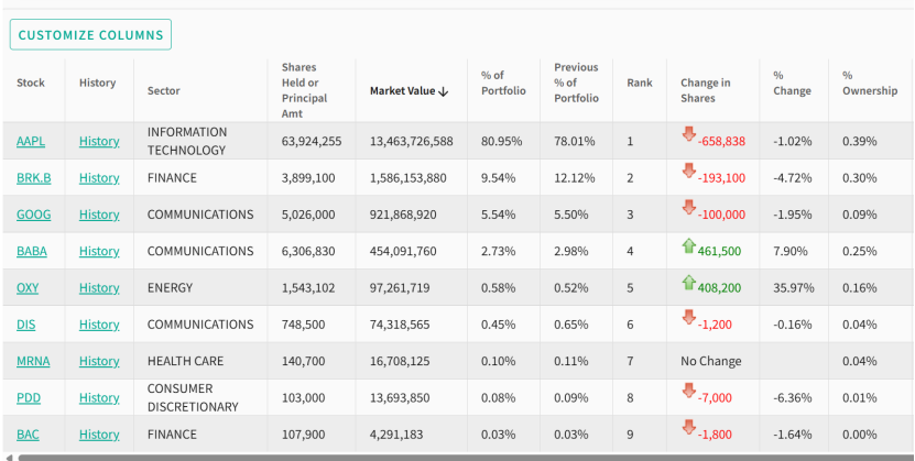与此同时,H&H基金在一季度还大幅减持了谷歌和阿里巴巴,其中谷歌被减持266万股,减持幅度达70.51%,期末持股市值降至1.73亿美元,上一季度末的持股市值高达7.17亿美元,从第三大持仓降至第六;阿里巴巴则被减持147万股,减持幅度为26.94%,期末持股市值为5.27亿美元。
