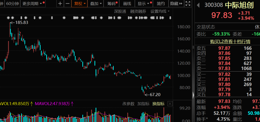 获关注的中际旭创、新易盛两只算力白马股今年1~4月股价大幅下跌,年内最低价较年初的高价一度下跌50%以上,近期算力板块热度再起,5月以来股价均有明显反弹,两股累计涨幅分别为17.18%、32.09%。