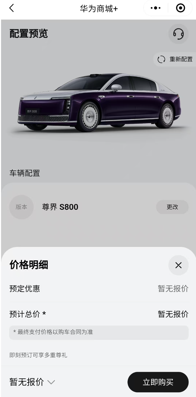 5月30日晚,华为与江淮汽车合作推出的尊界品牌首款车型尊界S800正式发布。发布会上,尊界S800售价终于揭晓——70.8万元起,最高101.8万元;此前该车预售价为100万—150万元。首批尊界S800将于6月26日开始交付,限量599台,规模批量交付将于8月中旬开始。